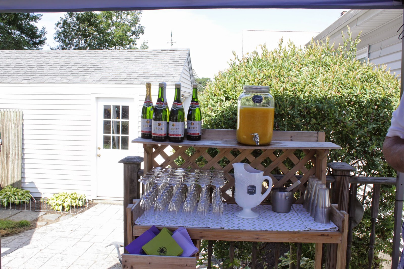 We wanted a small, intimate shower for her, here at our home that would take place both inside and outside. That means there were lots, and lots, and lots of home projects to be completed on top of the shower projects. Needless to say, not all of the projects were completed which is frustrating. My husband is much more laid back than I am, and he kept telling me to let it go. I finally did, about half an hour before the brunch..... The projects still need to be completed as we're having the rehearsal dinner, a pig roast as a nod to Matt's redneck ways, here at our home as well. Hopefully we'll complete them all... We also needed the weather to cooperate. Up through the night before the weather folks were calling for rain - not overcast, or sprinkles, but rain. I had a meltdown. We call our house "the shoe box". It's small, and we've packed A LOT of living into it. Could I fit 40 people inside my house for the shower? Yes, but it wouldn't be either comfortable or relaxing. We needed to be able to be outside as well. Thankfully, God and Mother Nature took our prayers to heart and we only had one brief sprinkle before the shower and one as we were cleaning up!