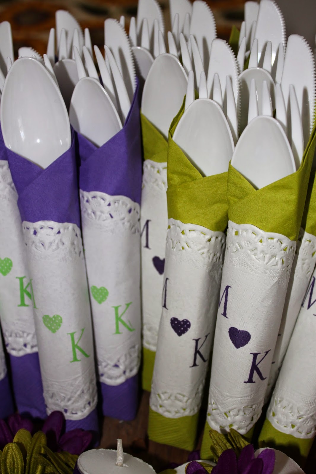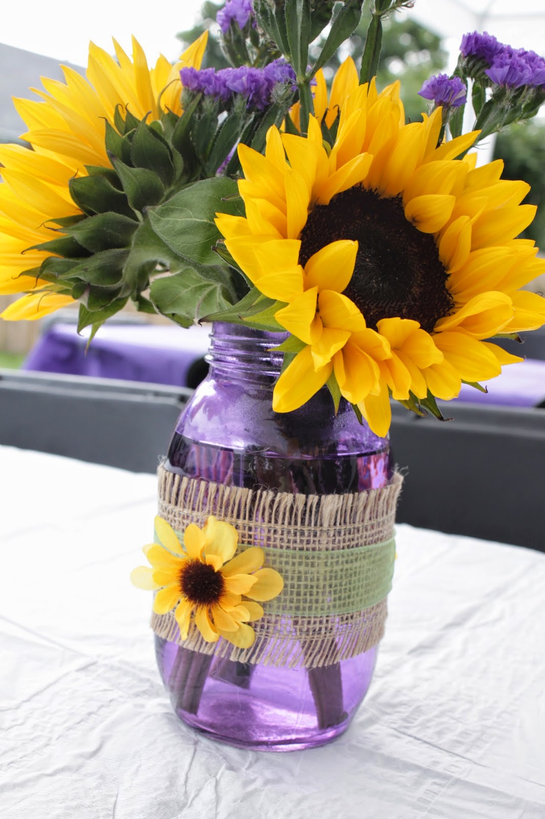 Matt and Katie are going with a bit of a rustic, with a little bit of glam, feel to the wedding. Purple is Katie's favorite color, green is Matt's. Sunflowers are prominent as they have special meaning for them. There was lots and lots of food, most I didn't snap pictures of because everyone tucked in as soon as it was put on the table. I'll add recipes for some of the items, perhaps in another post.