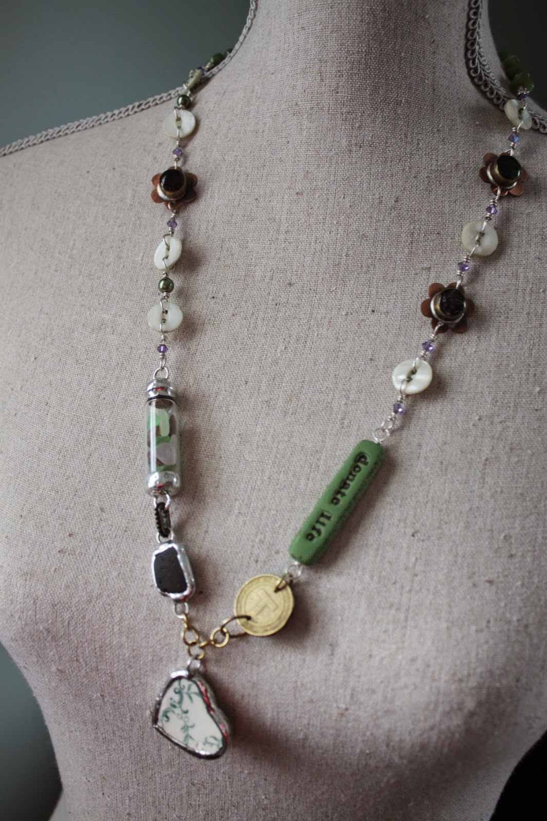 Overall, I'm very happy with this necklace; it needs a little bit of tweaking and I'll work on that. It does flip a bit though, so I need to figure out a way to keep the bezel/button sections facing front (I think it's a weight thing). If you have a suggestion, suggest away!