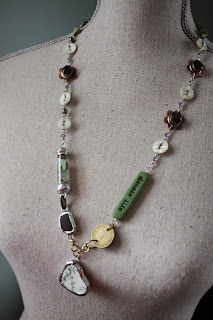 Above are some components in progress. I can't even look at that beautiful piece of amethyst sea glass - I broke it trying to put jam a too thick, curved piece of wire through it.....