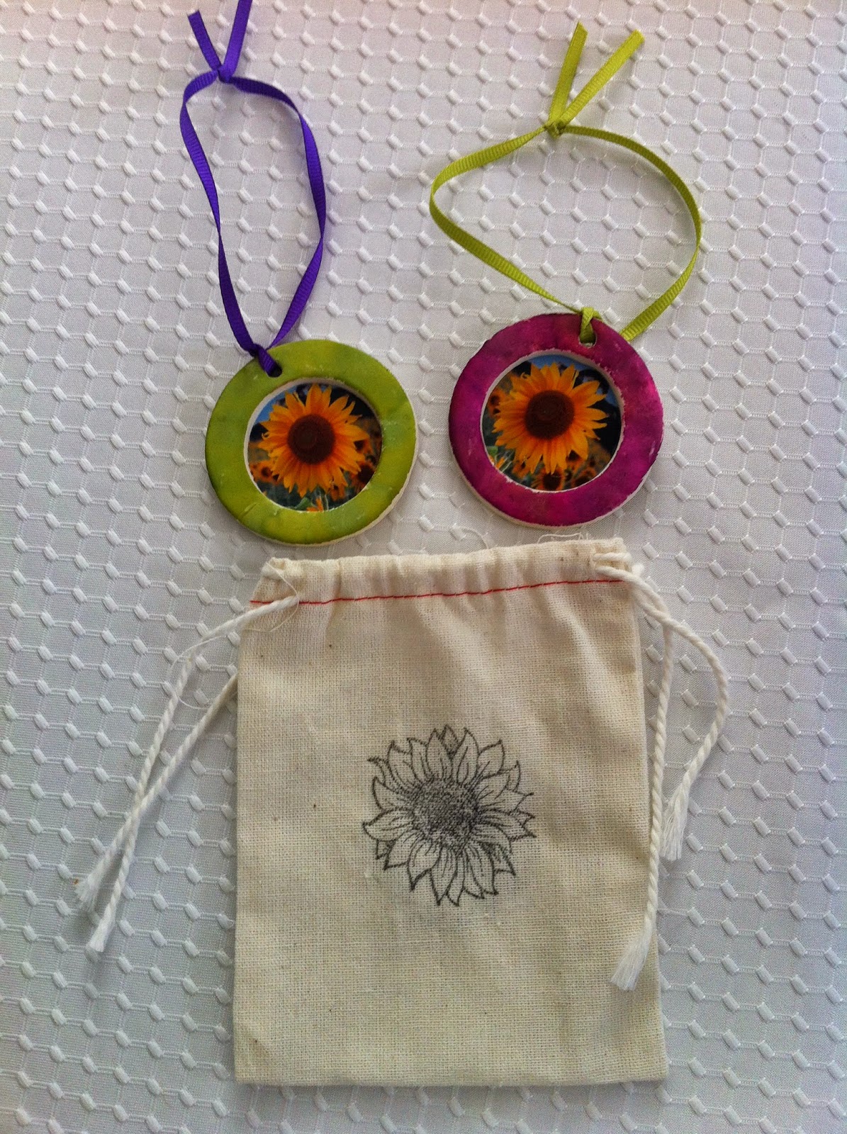We made ornaments as favors for our guests and I purchased muslin bags from In The Clear on Etsy. The original bags I ordered came in the wrong size. Dana was fabulous to work with. Communication was great, she mailed out the replacements right away and sent along a return shipping label so I could mail the bags back to her. I so appreciate such great customer service, I'll definitely be back! We used a sunflower stamp and Staz-On ink to embellish the bags simply.I also found several very sweet prints on Etsy that enhanced the theme for the day: